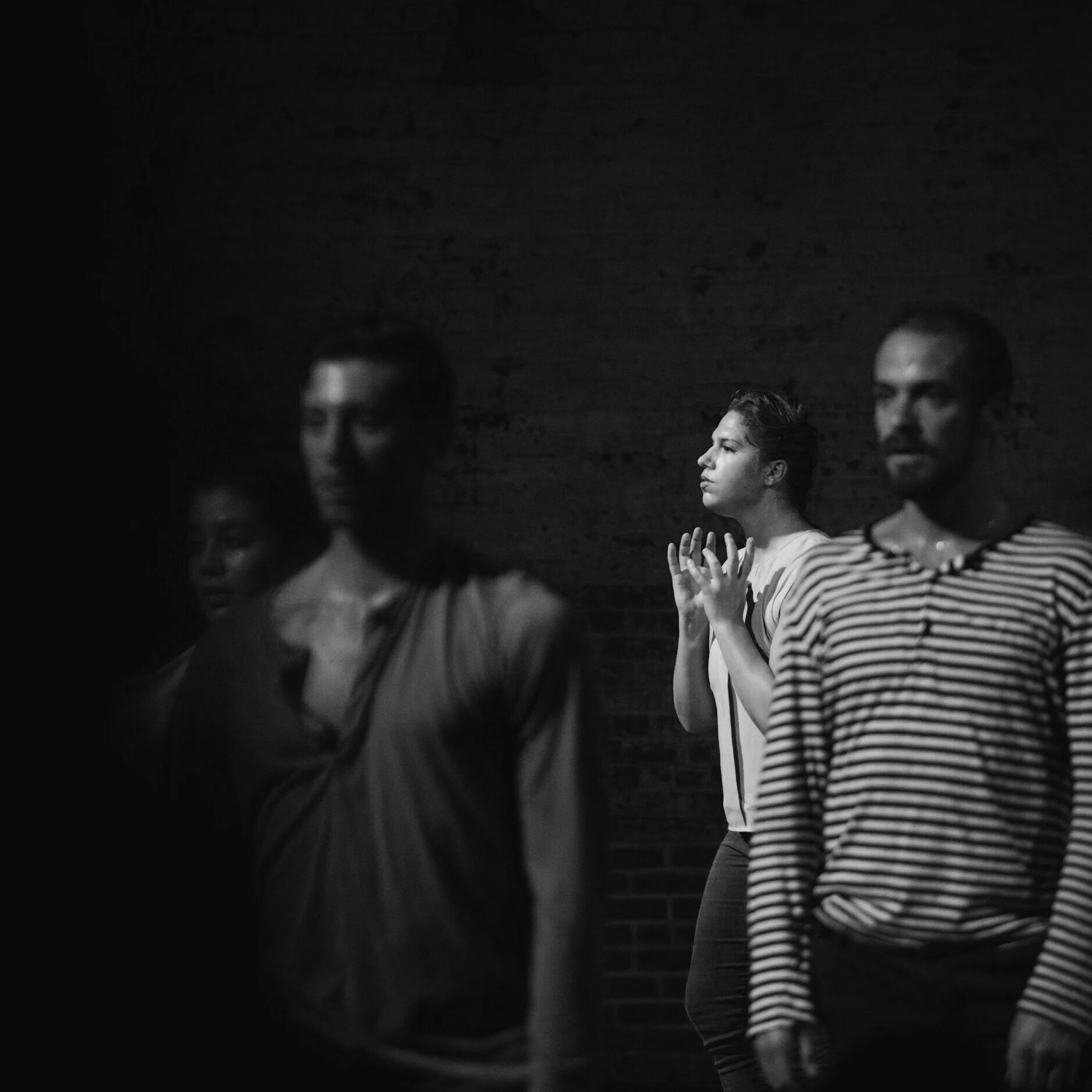 Haunted by elemental human themes and drawn to the ineffable, I return often to certain materials: the physics and psychics of magenta, afterimage, calving glaciers, environmental empathy, and loss. Movement vacillates between rigorous banalities—overdone hugs, excessive flapping—and wild off-kiltering, with performers spiraling and plummeting through space. A duet that sounds like an egg cracking. Stillness that flutters beneath a forest of neon pink. I carve the ephemeral into felt physical poetics—sculpting swells of virtuosic action, intimate gestures, and phrasing that feels woody, bright, and complex.